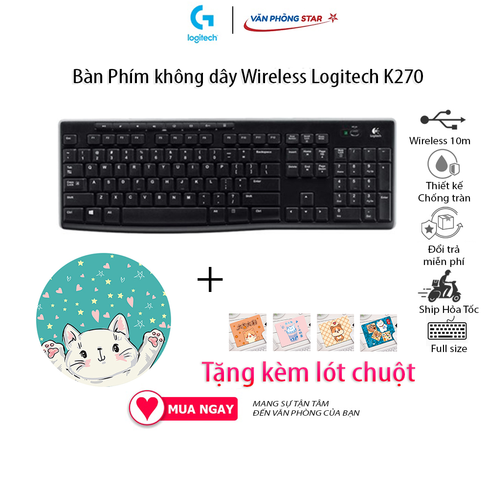 Bàn phím không dây Wireless Logitech K270 Màu đen