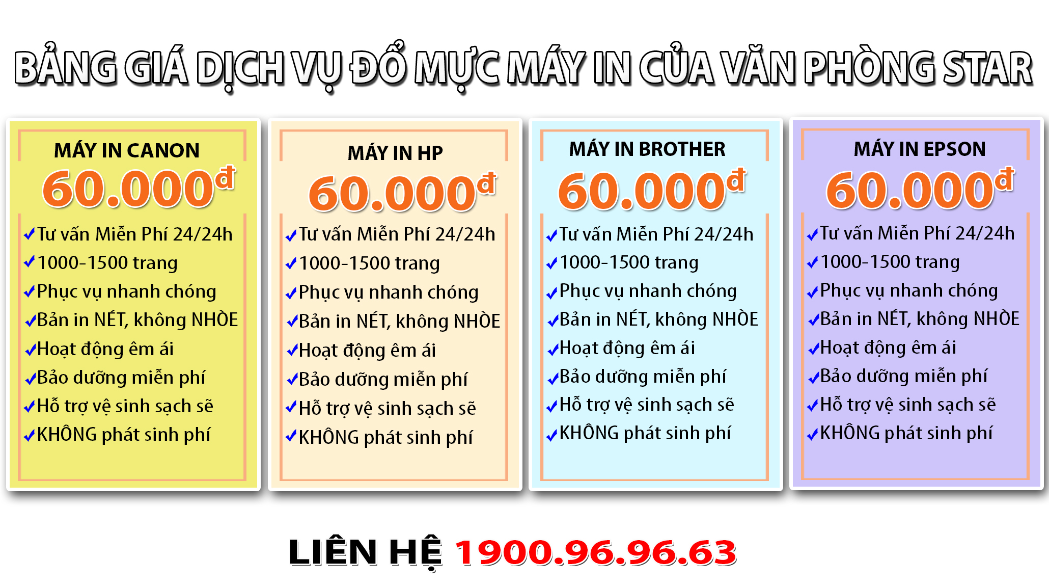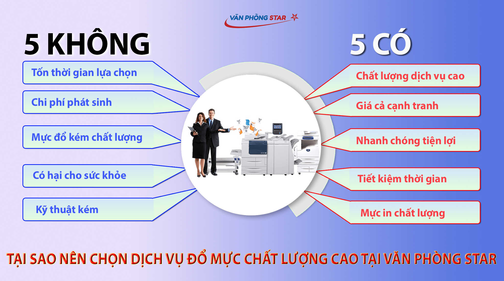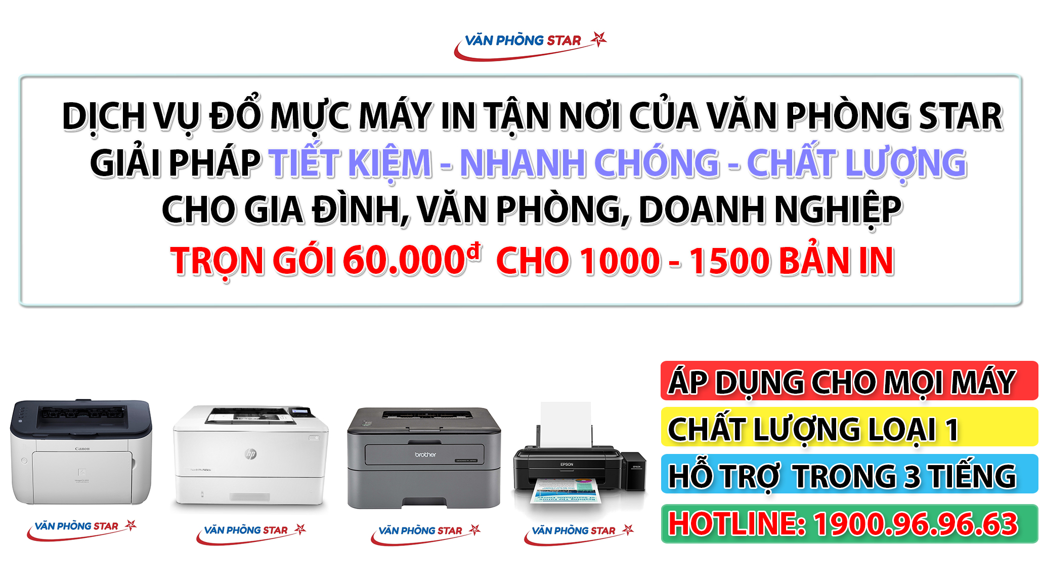 Văn phòng Star chuyên cung cấp dịch vụ đổ mực máy in tại nhà, máy photocopy và máy fax với chi phí tiết kiệm, đáp ứng nhanh cùng chất lượng mực in tốt nhất. Chúng tôi sở hữu một đội ngũ nhân viên có kinh nghiệm, năng động và có tay nghề cao chắc chắn sẽ làm hài lòng quý khách.