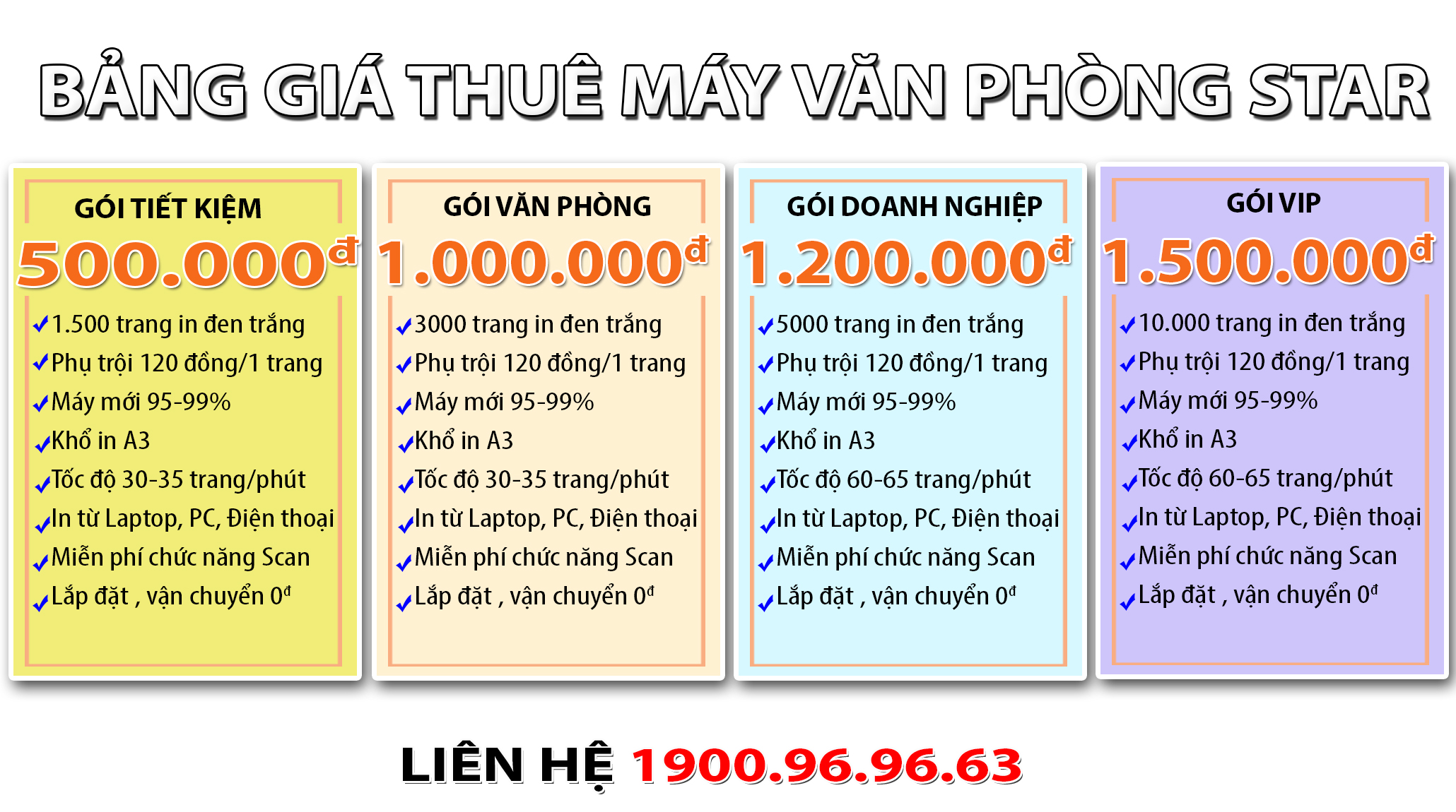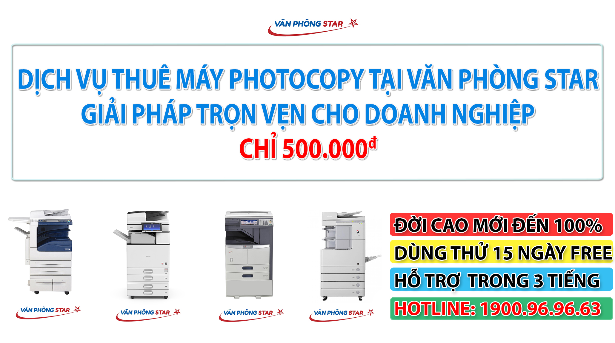 Văn phòng Star cung cấp dịch vụ cho thuê máy photocopy giá rẻ, chuyên nghiệp, uy tín tại Hà Nội. Với các dòng máy phổ thông, tới dòng máy cao cấp nhất trên thị trường