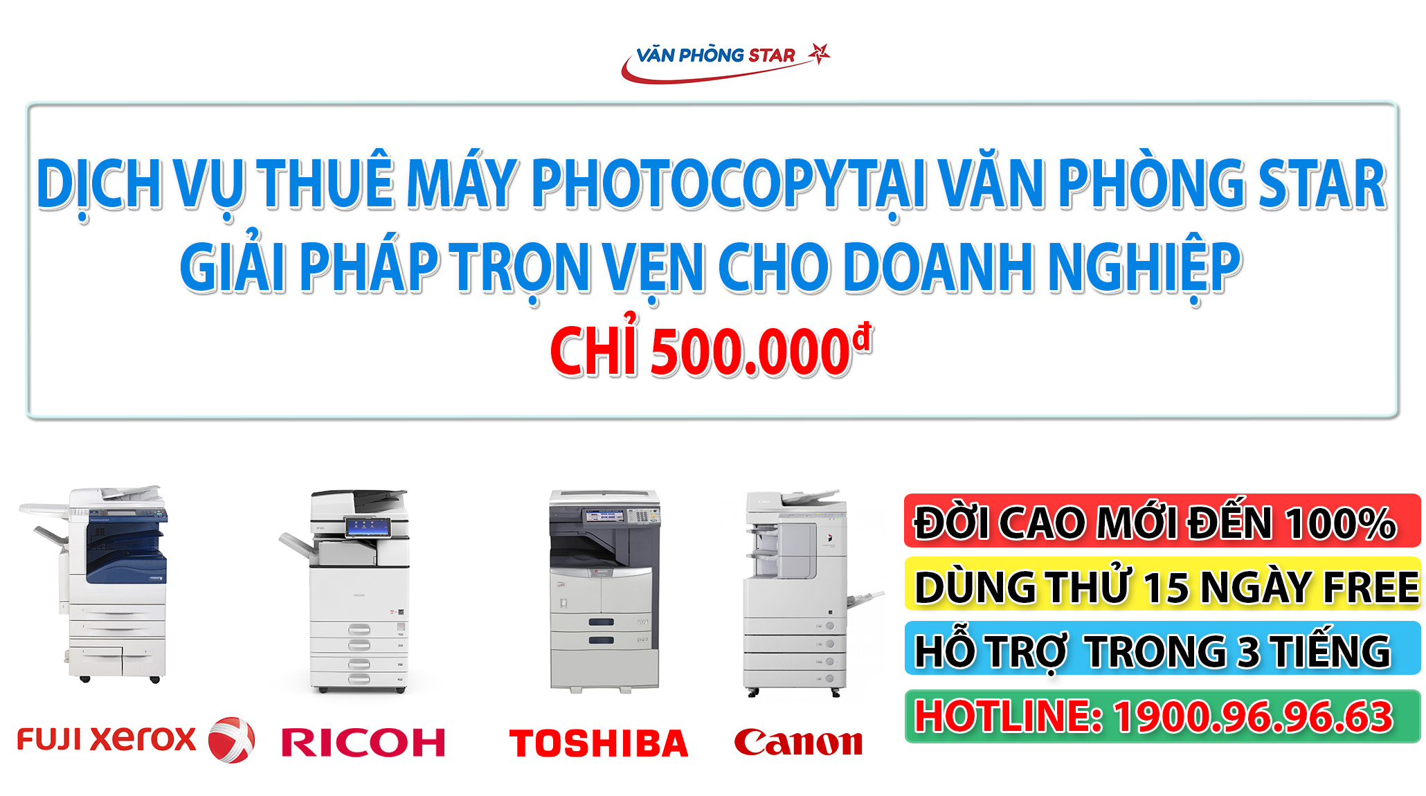 Văn phòng Star cung cấp dịch vụ cho thuê máy photocopy giá rẻ, chuyên nghiệp, uy tín tại Hà Nội. Với các dòng máy phổ thông, tới dòng máy cao cấp nhất trên thị trường