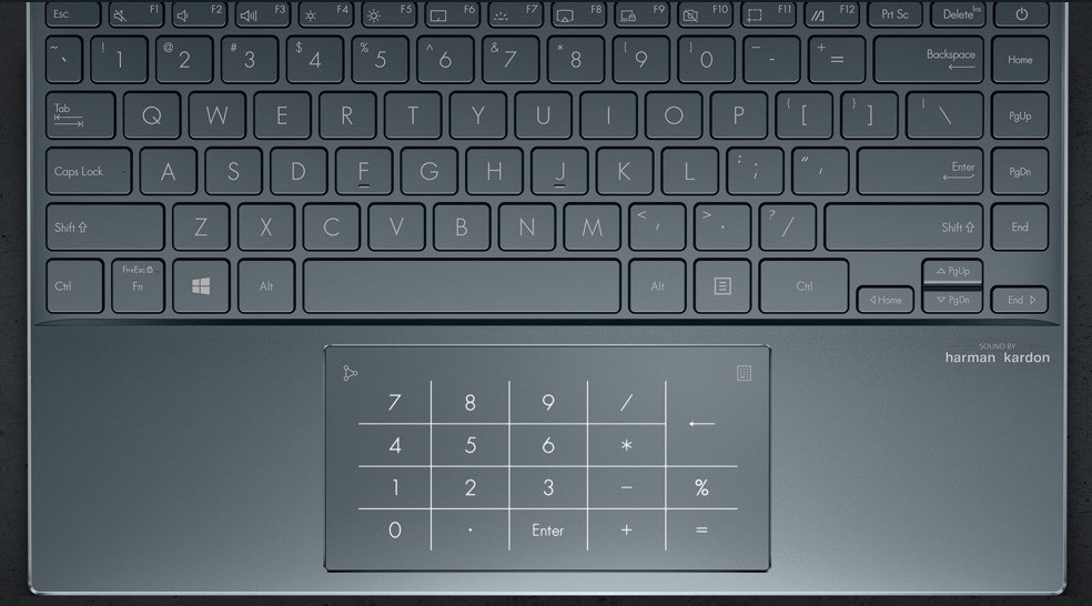 Bàn phím full-size với hành trình phím 1.4mm, cùng độ dốc phím vừa phải cho cảm giác gõ êm ái và thoải mái. Touchpad chức năng kép rộng rãi với bàn phím số được trang bị Led tích hợp, hỗ trợ đa điểm nhạy bén khi vừa sử dụng đồng thời Numberpad và con trỏ chuột giúp người dùng nâng cao trải nghiệm.