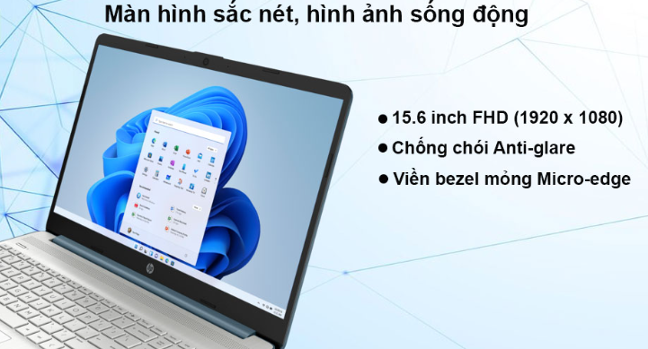 Với màn hình 15.6 inch và độ phân giải Full HD, HP 15s-fq5228TU với viền bezel mỏng Micro-edge cho hình ảnh sắc nét, sống động.