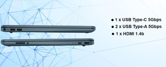 - Cổng kết nối: 1 x USB Type-C 5Gbps, 2 x USB Type-A 5Gbps, 1 x AC smart pin, 1 x HDMI 1.4b, 1 x headphone/microphone combo