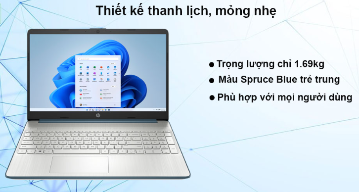 Laptop HP 15s-fq5228TU( 8U240PA) có thiết kế gọn gàng, trọng lượng chỉ với 1,69kg thuận tiện mang theo, phù hợp với những người sử dụng linh hoạt và di chuyển nhiều.