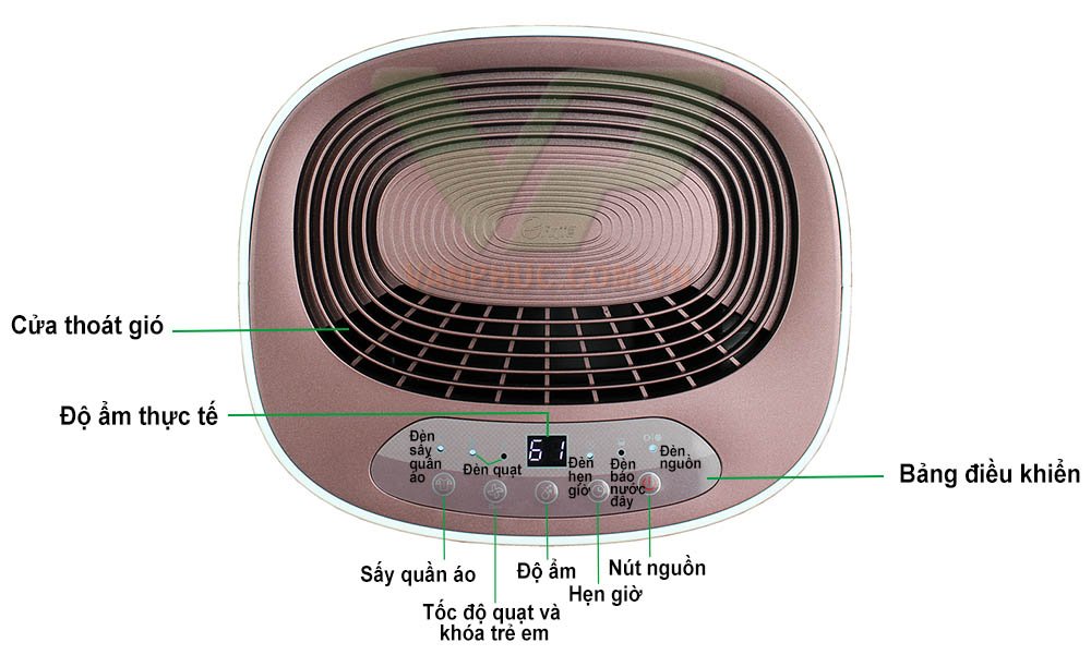 – Sản phẩm có chế độ hẹn giờ. Công suất hút ẩm 12 lít/ngày, dễ di động, tính thẩm mỹ cao, đặt trong phòng