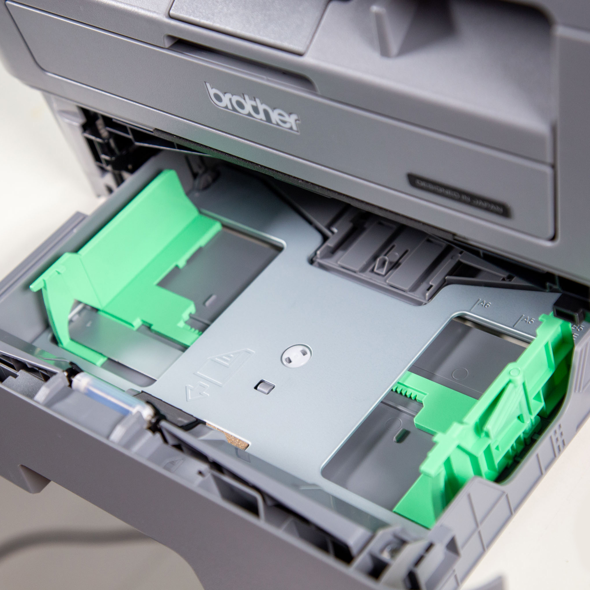 Một ưu thế cho các dòng máy đa năng của Brother là khay nạp giấy lớn, ví dụ chiếc máy in HP 236sdw có khay nạp giấy vào 150 tờ, còn máy in laser đa chức năng Brother MFC-L2701d lại có khay nạp giấy cỡ đại, lên tới 250 tờ. Ưu điểm này giúp người dùng tiết kiệm được thời gian thêm giấy trong quá trình in ấn rất nhiều, gần như tiết kiệm gấp 2 lần thời gian nạp giấy, khi người dùng in ấn số lượng lớn.