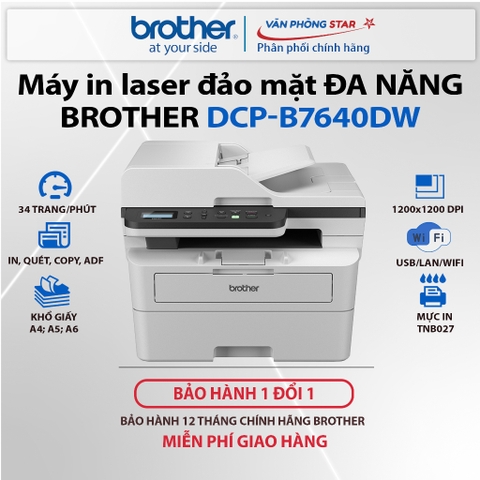 Máy in laser Brother DCP-B7640DW đa chức năng thuộc dòng máy in Laser Toner Box thế hệ mới của Brother. Với những cải tiến trong thiết kế, hiệu suất in cùng tốc độ in nhanh nhất trong phân khúc, brother DCP-B7640DW là sự lựa chọn hàng đầu trong phân khúc. Cùng Văn Phòng Star tìm hiểu các tính năng nổi bật về mẫu máy này nhé.