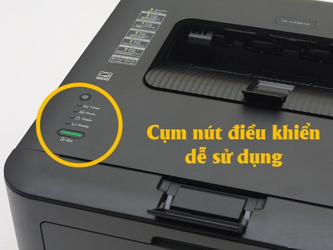 Khay giấy ra ở mặt trên chứa được 100 tờ, cụm nút điều khiển và đèn tín hiệu đơn giản.