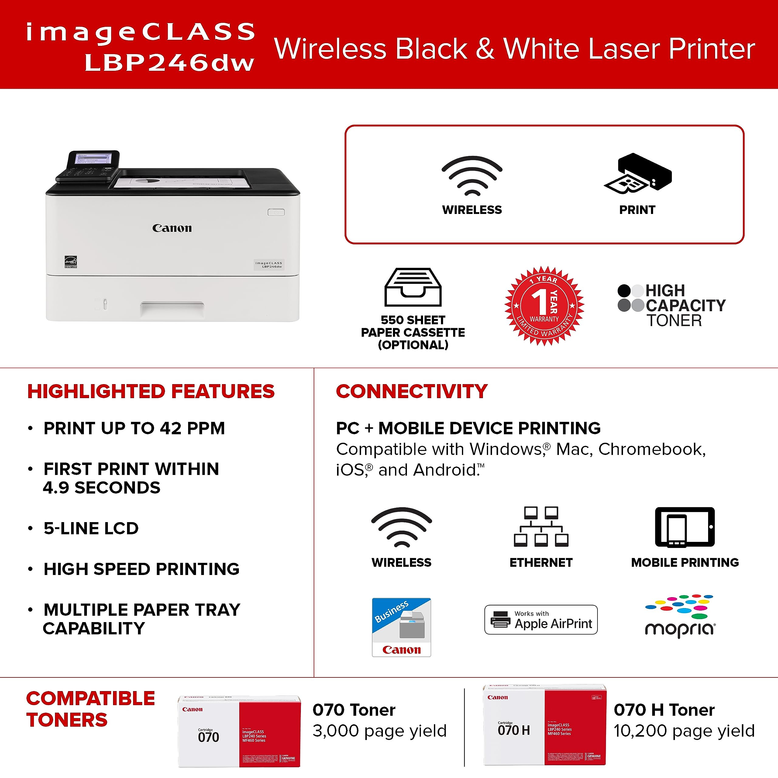 Máy in Canon LBP 246dw là sản phẩm được thiết kế tinh tế, tích hợp sẵn chức năng in hai mặt tự động (Duplex) và kết nối wifi, giúp bạn in ấn nhanh chóng hiệu quả.