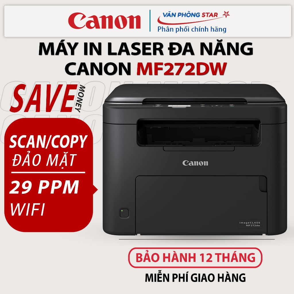 - Trả lời: Có, máy in Canon MF272Dw có tính năng sao chép hai mặt tự động giúp tiết kiệm thời gian và giấy tờ.