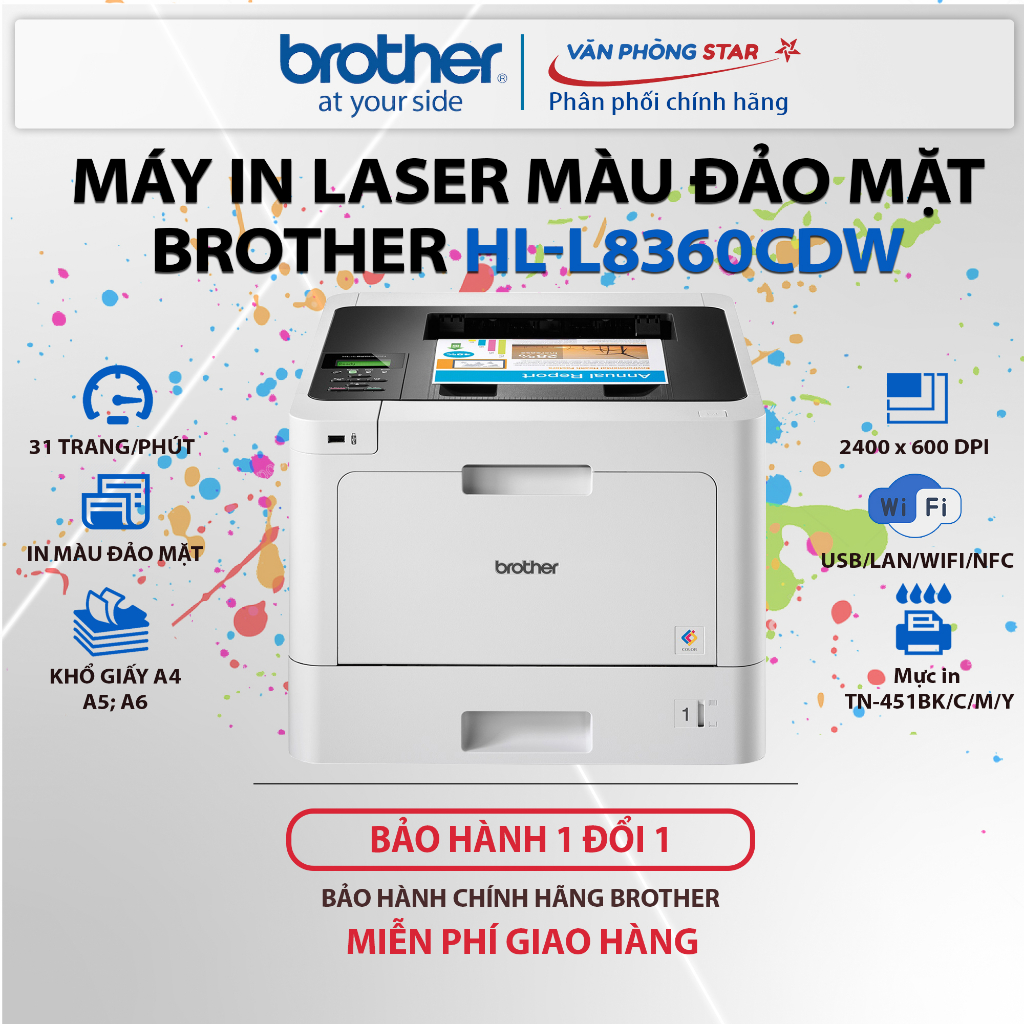 Thông số kỹ thuật của máy in màu Brother 8360CDW đơn năng.
