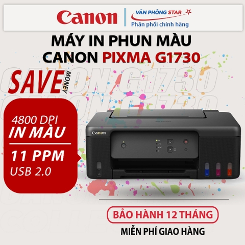 Máy in phun màu Canon G1730 là một trong những sản phẩm được đánh giá cao về tính năng và hiệu suất. Với thiết kế nhỏ gọn, khả năng in ấn tốt và tính năng kết nối đa dạng, máy in này sẽ là sự lựa chọn hoàn hảo cho nhu cầu in ấn của bạn. Cùng Văn Phòng Star tìm hiểu chi tiết về mẫu máy in này bạn nhé!