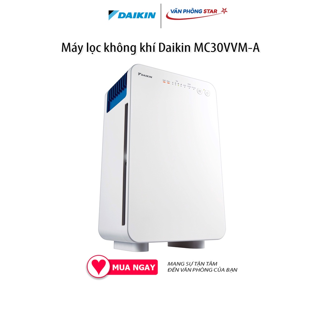 ¸.·’★¸.·’★*·~-.¸-(★ VĂN PHÒNG STAR ★)-,.-~*¸.·’★ »——` Máy lọc không khí Daikin MC30VVM-A ´——» 🌸 Chế độ bảo hành theo hãng trên toàn quốc ở các cơ sở 🌸 🔹 Thông Số Kỹ Thuật Của Máy lọc không khí Daikin MC30VVM-A ◾ Diện tích phòng sử dụng: Dưới 21m2 ◾ Lượng gió thổi ra: Cao 180 m3/h - Trung bình 120 m3/h - Thấp 90 m3/h ◾ Điện tiêu thụ: 5.5/6.0/11.0/16.0 W ◾ Độ ồn: 19 dB - 44 dB ◾ Bộ lọc bụi: Bộ lọc 3 lớp, HEPA ◾ Tính năng: Công suất: 3 m3/phút ◾ Lọc khí hiệu quả với phin lọc tĩnh điện Hepa và hệ thống phin lọc 3 cấp ◾ Đèn cảm biến bụi, PM2.5 ◾ Bảo hành: 12 tháng ◾ Xuất xứ: Hàn Quốc ◎◎◎◎◎◎◎◎◎◎◎◎◎◎◎◎◎◎◎◎◎◎◎◎◎◎◎◎◎◎ 🔸 Thiết kế nhỏ gọn Mang một thiết kế nhỏ gọn giúp bạn có thể lắp đặt máy tại nhiều nơi trong nhà. 🔸 Hệ thông phin lọc 3 cấp Hệ thống phin lọc 3 cấp sẽ giúp không khí của bạn được trong lành nhất. Bao gồm: phin lọc khô, phin lọc khử mùi và phin lọc bụi (Phin lọc tĩnh điện HEPA) đảm bảo lọc không khí nhanh chóng và triệt để. 🔸 Cảm biến PM2.5 và hiển thị chất lượng không khí Được trang bị với cảm biến PM2.5 cho phép nhanh chóng phát hiện những hạt bụi kích thước nhỏ, hiển thị dễ dàng và vận hành thông minh. Hiển thị bụi: Bụi trong nhà kích thước lớn (xấp xỉ 2.5μm và lớn hơn) 🔸 Hiển thị PM2.5: Hạt siêu nhỏ (xấp xỉ 2.5μm và nhỏ hơn) ──▄▌▐▀▀▀▀▀▀▀▀▀▀▀▀▀▀▀▀▀▀▀▀▀▀▀▌ ▄██▌█ ░ BẢO HÀNH CHÍNH HÃNG ███▌█▄▄▄▄▄▄ ▄▄▄▄▄▄▄▄▄▄▄▄▄▄ ▄▄▌ ▀❍▀▀▀▀▀❍❍▀▀▀▀ ▀▀▀▀▀▀▀▀❍❍ ▀▀.